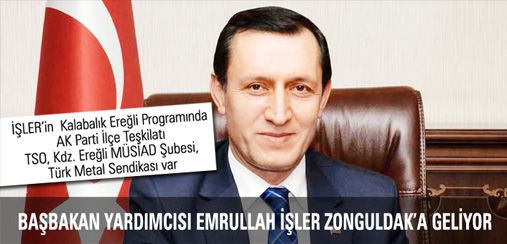 BAŞBAKAN YARDIMCISI EMRULLAH İŞLER ZONGULDAK’A GELİYOR