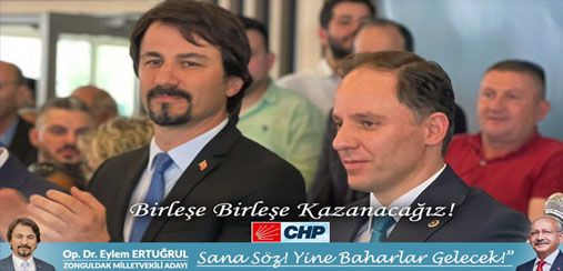 CHP Zonguldak Milletvekili Adayı Eylem Ertuğrul, Aday Tantım Toplantısında, iktidara geleceklerini “Emeğin başkentinden tüm ülkeye sesleniyorum. Ben Eylem Ertuğrul; ama biz, hepimiz Kemal Kılıçdaroğlu’yuz. Biz, hepimiz Gazi Mustafa Kemal Atatürk’üz. Biz, ulu önderimizin; ‘iki büyük eserimden biri’ dediği Cumhuriyet Halk Partisi’nin birer neferi olarak dün nasıl hazırsak bugün de hazırız. İnanıyoruz. Başaracağız.” sözleri ile ifade etti.
