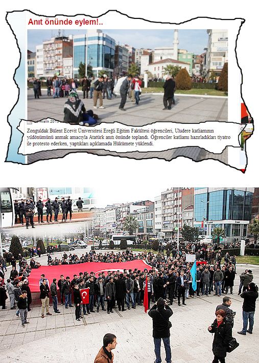 Bülent Ecevit Üniversitesi Ereğli Eğitim Fakültesi öğrencileri ve Ereğli Ülkü Ocağı tarafından Atatürk Anıtı önünde eylem yapıldı. Eylemde konuşan Fakülte öğrencisi Ömer Altan ” Devletimize ve güvenlik güçlerimize karşı kin kusulmuş ve ilçemizde bölücü bir oyun sergilenmiştir. Bu vahim olay bizlerin de içerisinde bulunduğu vatansever öğretmen kadrolarının yetiştiği Fakültemizin ve dolayısıyla da Ereğli’mizin ismini lekelemiş, ilçemiz insanını da yaralamıştır” dedi.