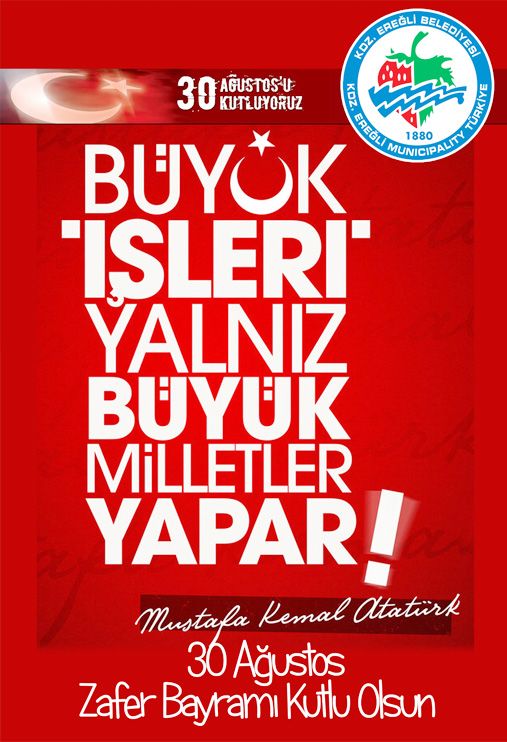 Karadeniz Ereğli Belediyesi, Türk Milletinin 30 Ağustos Zafer Bayramını Kutlar.