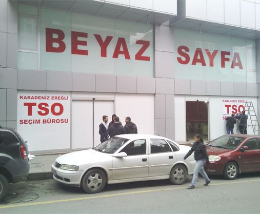 Kdz. Ereğli Ticaret ve Sanayi Odası seçimleri gün geçtikçe daha da renkli görüntüler oluşturmaya devam ediyor. Bazı grupların saat başı birleşip-sonrasında ayrılmaları ve tekrar birleşmeye oturmaları kamuoyunu şaşkın bakışlarla meşgul etmeye devam ederken 5 Mayıs'ta yapılacak seçimlere 2 hafta kala bu seferde birleşme sevdalısı gruplardan birisi şehrin merkezinde "BEYAZ SAYFA" sloganı ile dev bir seçim bürosu açtı.