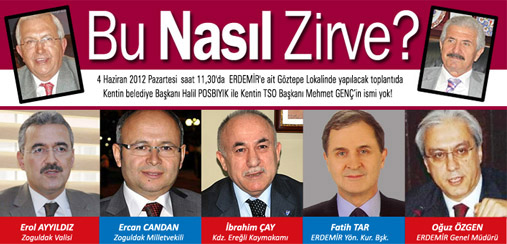 Edinilen bilgilere göre 4 Haziran 2012 Pazartesi saat 11,30'da ERDEMİR'e ait Göztepe Lokalinde, Zonguldak Valisi Erol AYYILDIZ, Yöre Milletvekili Ercan CANDAN, Ereğli Kaymakamı İbrahim ÇAY, ERDEMİR Yönetim Kurulu Başkanı Fatih TAR ve ERDEMİR Genel Müdürü Oğuz ÖGEN bir araya gelecek.