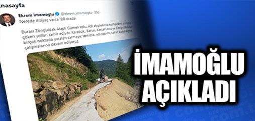 Sel felaketi sonrasında yolları kapanan Gümeli’de İBB ekiplerinin çalışma yaptıklarını Ekrem İmamoğlu “Nerede ihtiyaç varsa İBB orada” başlığıyla bildirdi.