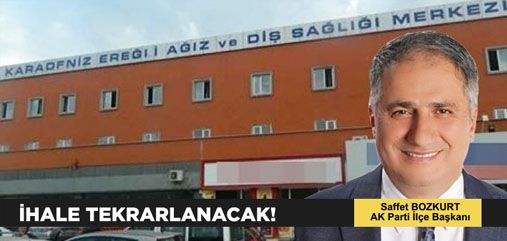 AK Parti Kdz. Ereğli İlçe Başkanı Av. Saffet Bozkurt, Kdz. Ereğli Ağız ve Diş Sağlığı Merkezi’nin ihalesinin tekrarlanacağını bildirdi. Bozkurt, ilk olarak 8 Nisan olarak ilan edilen ancak katılım olmaması nedeniyle ertelenen ADSM ihalesinin 1 Ağustos’ta yapılacağını açıkladı.
