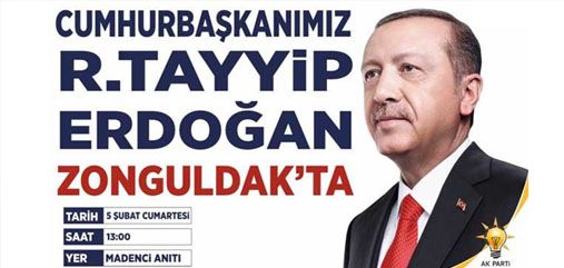 AK Parti Kdz. Ereğli İlçe Başkanı Saffet Bozkurt, Cumhurbaşkanı ve AK Parti Genel Başkanı Recep Tayyip Erdoğan'ın Cumartesi günü Zonguldak'a geleceğini bildirdi.