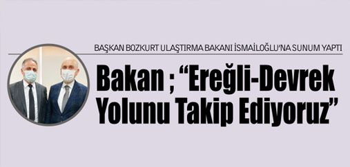 BAKAN KARAİSMAİLOĞLU: “EREĞLİ-DEVREK YOLUNU TAKİP EDİYORUZ” BAŞKAN BOZKURT SUNUM YAPTI, DOSYA SUNDU
