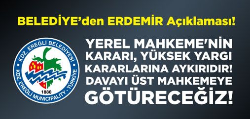 KDZ. EREĞLİ BELEDİYESİ’NDEN ERDEMİR AÇIKLAMASI:“YEREL MAHKEME’NİN KARARI, YÜKSEK YARGI KARARLARINA AYKIRIDIR” “DAVAYI ÜST MAHKEMEYE GÖTÜRECEĞİZ”