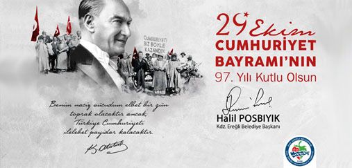 Kdz. Ereğli Belediye Başkanı Halil Posbıyık, 29 Ekim Cumhuriyet Bayramı’nı kutladı. Başkan Posbıyık mesajında; “Cumhuriyetimizi korumak ve geliştirmek için pusulamız Atatürk ilkeleri ve devrimleridir” dedi.