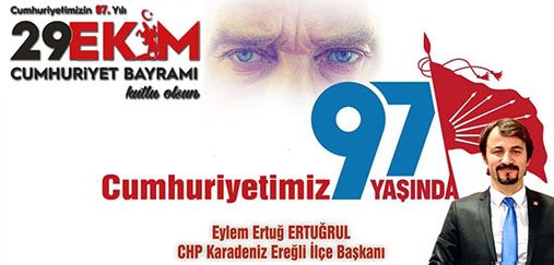 EYLEM ERTUĞRUL; Cumhuriyet’in ilanının 97. yıldönümüne ulaşmanın haklı gurur ve coşkusunu yaşıyoruz.