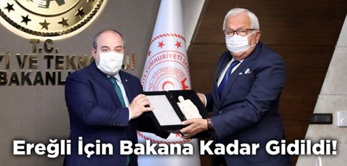 Karadeniz Ereğli'den bir heyetin, Sanayi ve Teknoloji Bakanı Mustafa Varank'ı ziyaret ettiği öğrenildi.