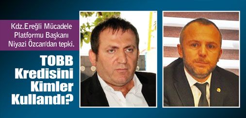 Kdz.Ereğli Mücadele Platformu Başkanı Niyazi Özcan'dan tepki. Kdz.Ereğli Ticaret ve Sanayi Odası'nın önceki dönem başkan adaylarından ve Ereğli Mücadele Platformu Başkanı Niyazi Özcan, ülke genelinde açıklanan nefes kredisinin Kdz.Ereğli'de nefes aldırmadığını söyledi. Özcan, konuya ilişkin yaptığı açıklamasında, Türkiye Odalar Borsalar Birliği'nin (TOBB) açıklamış olduğu nefes kredisinin Kdz.Ereğli'deki ticaret erbabı insanları maalesef oksijensiz bıraktığını belirtti.