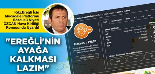 Kdz.Ereğli'de resmi verilere göre hava kalitesinin sağlıksız koşullara gitmesine oldukça sert tepki gösteren Kdz.Ereğli İçin Mücadele Platformu Sözcüsü Niyazi Özcan: "Biliyorduk zehirlendiğimizi, bilerek ölüme terk edildiğimizi ama ilk defa devletin resmi raporlarına göre de öldürüldüğümüzü anlamış olduk"