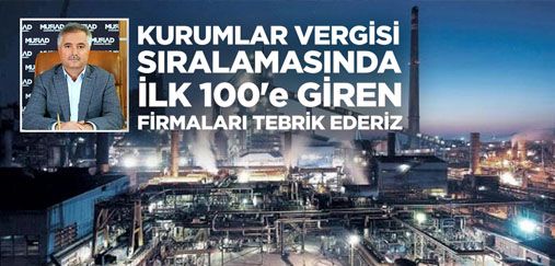 KURUMLAR VERGİSİ SIRALAMASINDA İLK 100’e GİREN FİRMALARI TEBRİK EDERİZ