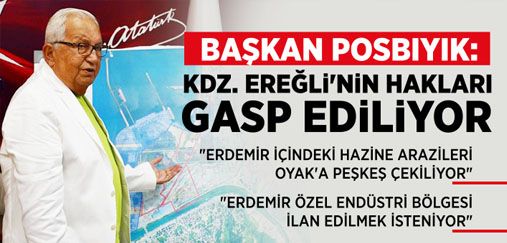 Kdz. Ereğli Belediye Başkanı Halil Posbıyık, makamında düzenlediği basın toplantısında Erdemir içerisinde yer alan hazine arazilerinin OYAK’a peşkeş çekildiğini ve Erdemir’in Özel Endüstri Bölgesi ilan edilmek istendiğini söyledi. Kdz. Ereğli halkının ve belediyenin haklarının gasp edildiğini belirten Başkan Posbıyık, “Kdz. Ereğli’nin hakları sonuna kadar savunmaya devam edeceğim” dedi.