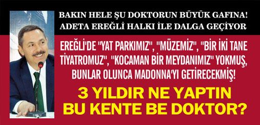 EREĞLİ'DE "YAT PARKIMIZ", "MÜZEMİZ", "BİR İKİ TANE TİYATROMUZ", "KOCAMAN BİR MEYDANIMIZ" YOKMUŞ, BUNLAR OLUNCA MADONNA'YI GETİRECEKMİŞ! 3 YILDIR NE YAPTIN BU KENTE BE DOKTOR?
