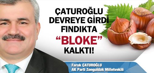 AK Parti Zonguldak Milletvekili Faruk Çaturoğlu, fındık üreticilerimizin elektrik borçlarından kaynaklanan borçları nedeniyle “fındık alanbazlı gelir desteği ödemlerine” Ziraat Bankası tarafından konulan blokenin kaldırıldığını söyledi.