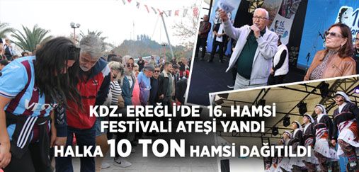 Kdz. Ereğli Belediyesi’nin STK’lar ve sponsorların desteğiyle düzenlediği 16. Hamsi Festivali’nin ateşi yandı. Belediye Başkanı Halil Posbıyık’ın halka 10 ton hamsi dağıtımıyla start verdiği festivalde vatandaşlara bin mangal, 4 bin ızgara, 5 ton kömür, 10 bin helva, 4 ton soğan, 10 bin ekmek, 30 kasa limon ve 10 bin adet su dağıtıldı. 24 Kasım Öğretmenler Günü öncesi festivalin onur konuğu öğretmenler olacak. Festivalde Karadeniz müziğinin güçlü sesi Selçuk Balcı konser verdi.