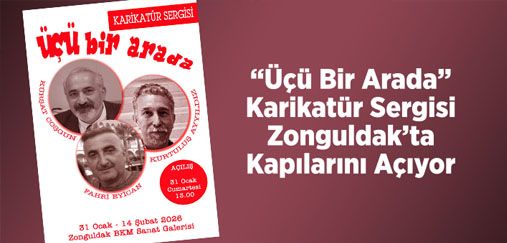 Usta çizerler Kürşat Coşgun, Kurtuluş Ayyıldız ve Fahri Eyican’ın eserlerini bir araya getiren "Üçü Bir Arada" karikatür sergisi, Zonguldak BKM’de sanatseverlerle buluşmaya hazırlanıyor.