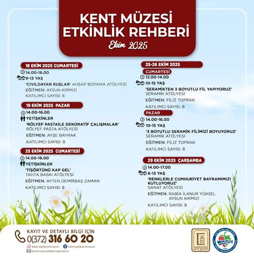 Kdz. Ereğli Belediyesi Kent Müzesi 2025 yılı Ekim ayı atölye programını açıkladı.