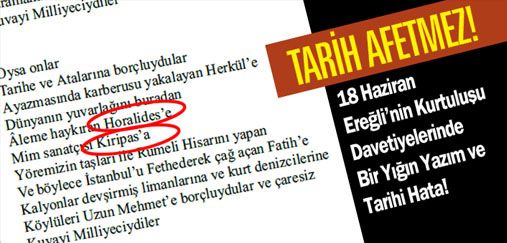 TARİH AFFETMEZ! “18 Haziran Ereğli’nin Kurtuluşu Davetiyelerinde Bir Yığın Yazım ve Tarihi Hata!”