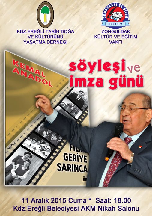 CHP eski Grup Başkan Vekili, CHP eski Zonguldak ve İzmir Milletvekili Kemal ANADOL'un yeni kitabı "FİLMİ GERİYE SARINCA" için söyleşi ve imza günü düzenleniyor.