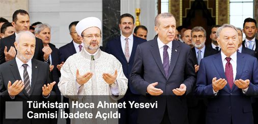 Kazakistan’ın Türkistan şehrinde Türkiye Diyanet Vakfı tarafından yaptırılan Hoca Ahmet Yesevi Camisi, Cumhurbaşkanı Recep Tayyip Erdoğan tarafından ibadete açıldı.