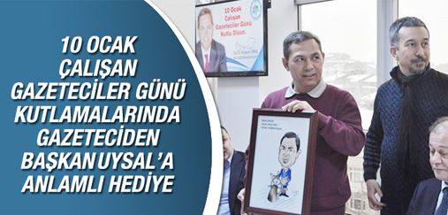 10 OCAK ÇALIŞAN GAZETECİLER GÜNÜ KUTLAMALARINDA GAZETECİDEN BAŞKAN UYSAL’A ANLAMLI HEDİYE