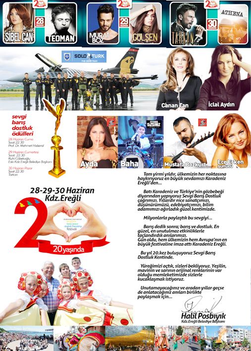 20. Sevgi Barış ve Dostluk festivali 20. yılına yakışır büyüklükte olması için 6 aydır canla başla çalışan Ereğli Belediyesi bunda ne kadar başarı oldu bilinmez ama sansasyonel açıdan çok büyük daha ilk günden patırtılar çıkmaya başladı. Pop sanatçısı Murat BOZ 20. Sevgi Barış Dostluk Festivali kapsamında 29 Haziran akşamı vereceği konserini iptal ettiği öğrenildi.
