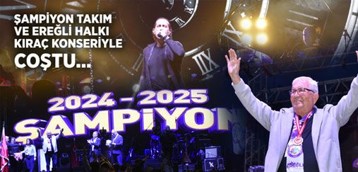Kdz. Ereğli Belediyespor’un şampiyonluğu Kıraç konseriyle kutlandı. Belediyespor Kulüp Başkanı ve Belediye Başkanı Halil Posbıyık, söz verdiği gibi şampiyon takımı Ereğli halkının huzuruna çıkarttı, şampiyonlar birlikte alkışlandı. On binlerce Ereğlili Kıraç konseriyle coştu. Belediye Başkanı Halil Posbıyık, “Şampiyonluk Ereğli halkına armağan olsun” dedi. Başkan Posbıyık, milletvekillerine de seslenerek, “Ereğli’nin alt yapı sorunları var” çağrısında bulundu.