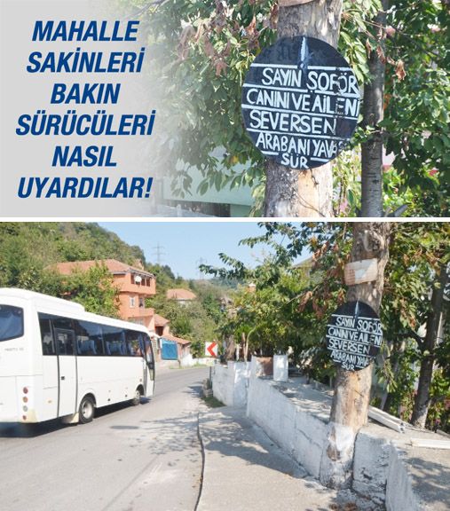 Zonguldak’ta yol kenarındaki evlerinin önünde sürekli trafik kazasına şahit olan Ali-Fatma Yıldız çifti, ağaca astıkları tabelayla sürücüleri uyarmaya çalışıyor.