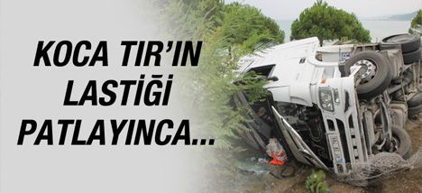 Lastiği patlayan sac yüklü TIR yoldan çıkarak devrildi. Kazada TIR sürücüsü Necdet Hanedan yaralandı.