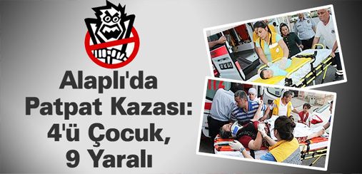 Alaplı'da hasta ziyaretinden dönen köylüleri taşıyan patpat olarak adlandırılan tarım aracı devrildi. Meydana gelen kazada ağır yaralanan 5 aylık bebek ile birlikte 4'ü çocuk 9 kişi yaralandı.