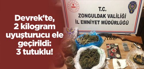 Zonguldak’ın Devrek ilçesinde, 2 kilo uyuşturucu madde ele geçirildi. Operasyonda, 3 şüpheli tutuklanarak cezaevine gönderildi.