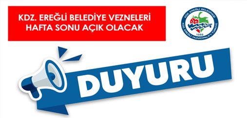 BELEDİYE VEZNELERİ HAFTA SONU AÇIK OLACAK