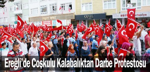 Ereğli'de Coşkulu Kalabalıktan Darbe Protestosu