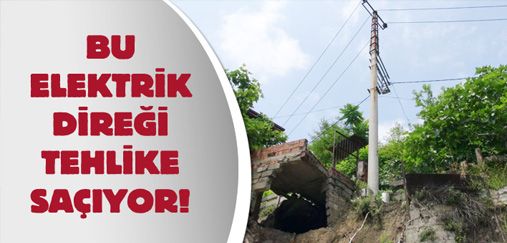 Zonguldak’ta yüksek gerilim hattının geçtiği bir beton direk, dikildiği zeminin oyulması sebebiyle tehlike saçıyor.