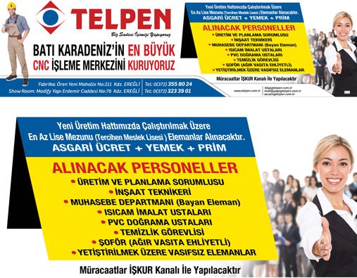 Bölgemizin güçlü kuruluşu TELPEN Ltd. Şti. yeni kuracağı CNC İşleme merkezi için yetiştirilmek üzere elemanlar arıyor.