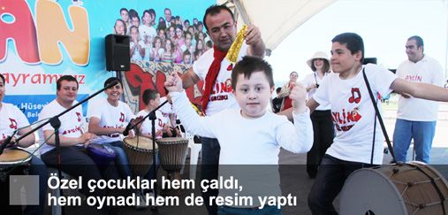 Özel çocuklar hem çaldı hem oynadı hem de resim yaptı