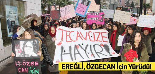 Ereğli'de yüzlerce lise öğrencisi Mersin'de hunharca katledilen Özgecan Arslan için yürüdü. Ellerinde dövizlerle anıt önüne kadar yürüyen öğrencilere vatandaşlar da eşlik etti. Öğrenciler 'Özgecan Arslan yirmisinde bir fidan' sloganı ile yürüdü. Eylemde polis geniş güvenlik önlemi aldı.