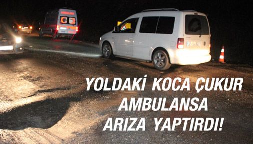 Yoldaki çukur ambulansa arıza yaptırdı