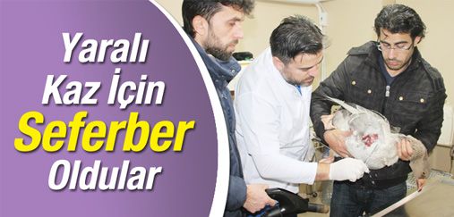Ereğli'de Menderek mevkiinde bulunan yaralı kaz, vatandaşlar seferber oldu. Kanadının alt kısmında kesik oluşan kaz, ilk olarak Belediye Veteriner Hekimliği ile Orman İşletme Müdürlüğü'ne götürülmesine rağmen tedavinin yapılamayacağı bilgisini alan vatandaşlar daha sonra özel veteriner hekime götürdü. Burada kazın yarasının iç organlara kadar ulaştığını öğrenen vatandaşlar, hayvanı veteriner hekim Hüseyin Demircan'a emanet etti.