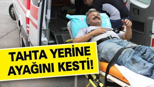 Spiral taşı ile tahta yerine ayağını kesti