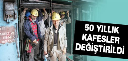 Zonguldak Türkiye Taş Kömürü Kurumu (TTK) Armutçuk Müessesi'nde 50 yıllık kafesler değiştirildi. Maden işçileri ilk kez değişen kafesle madene indi.