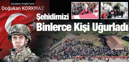 Türk Silahlı Kuvvetleri’nin (TSK) Irak’ın kuzeyinde terör hedeflerine yönelik olarak başlattığı Pençe Kilit operasyonu sırasında roket saldırısı sonucu şehit olan Şehit Piyade Uzman Er Doğukan Korkmaz, memleketi Zonguldak’ın Ereğli ilçesinde düzenlenen törenle son yolculuğuna uğurlandı.