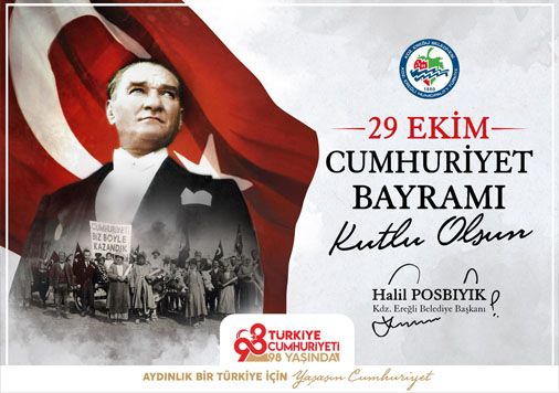 Kdz. Ereğli Belediye Başkanı Halil Posbıyık, Cumhuriyetin kuruluşunun 98. Yılı nedeniyle kutlama mesajı yayımladı.