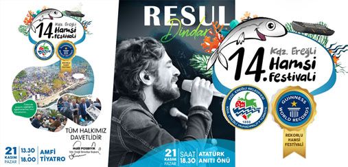 "2002 metre en uzun mangal" ödüllü Kdz. Ereğli Hamsi Festivali’nin 14’üncüsü 21 Kasım Pazar günü yapılacak. Belediye, festivalde kullanılacak 1 kilometre uzunluğundaki mangalların montajını tamamlamak üzere. Öğretmenler Günü'nün de kutlanacağı Hamsi Festivali'nde hamsili pilav yarışmalarından, kemençeye, horondan, tuluma kadar birbirinden keyifli etkinlikler yer alacak. Festivalde Resul Dindar konser verecek.