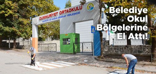 Kdz. Ereğli Belediyesi, okul bölgelerinde araç ve yaya trafiğini daha güvenli hale getirmek için yaya geçidi yapıyor ve uyarı levhaları dikiyor.
