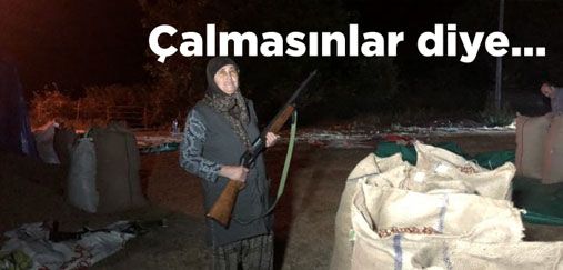 Alaplı ilçesinde fındık üreticileri, topladıkları mahsuller için hırsızlığa karşı harmanlarının başında tüfekle nöbet tutuyor.