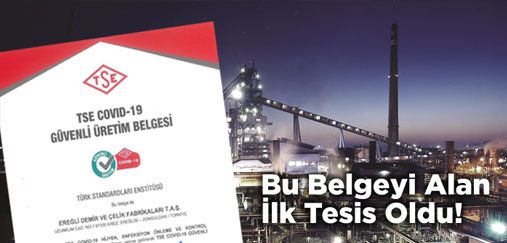 ERDEMİR SEKTÖRÜNDE TSE COVID-19 GÜVENLİ ÜRETİM BELGESİ ALAN İLK ENTEGRE TESİS OLDU