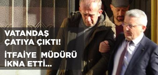 VATANDAŞ ÇATIYA ÇIKTI! İTFAİYE MÜDÜRÜ İKNA ETTİ…